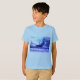 100% cotton so perfect for summer, It is a nicely designed t-shirt, the fabric is soft and the seams finished well, the body of the t shirt has no side seams. I bought a medium size for my two grandsons, aged 9 and 8 it will be slightly big on them but I would rather that than too small