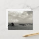Postcard with black and white photography showing boys flying a long tailed kite under on a beach. I took this photo at Sanur Beach on Bali Island.