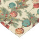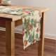 This whimsical Santa table runner exudes a playful nostalgia, transporting you to a bygone era of holiday cheer. The background is a warm, creamy beige reminiscent of vintage parchment, allowing the vibrant illustrations to pop with festive merriment.