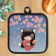 Kitsune Kokeshi Doll - Black Fox Geisha Girl Pot Holder