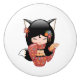 Kitsune Kokeshi Doll - Black Fox Girl Ceramic Knob