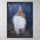 Extra large poster made from a fairytale illustration by Norwegian artist Theodor Kittelsen (King Valemon, the white bear, probably 1901 or 1912). It shows a princess riding on a white bear through the dark woods. In her hands she's holding a golden wreath.