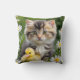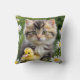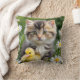 A cute tabby kitten with a yellow duckling in daisies and grass