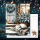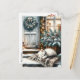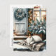 Celebrate Christmas with this charming postcard featuring a sweet white kitten napping peacefully on snow-covered stairs. The scene is adorned with festive elements like a wreath with pinecones and a cosy blanket. Twinkling lights and snowflakes complete the magical holiday atmosphere. Perfect for sending warm wishes this festive season.