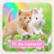 Kitten & Bunny with Rainbow Square Paper Coaster
