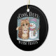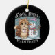 Kitten Cat and Snowman Friends Share Coffee Winter Ceramic Ornament