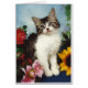 This pretty little kitten is posing amongst spring flowers for an all occasion greeting card.
