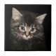 Long haired grey tabby kitten face photo ceramic tile