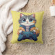 Kitten Holding Game Controller Smiling Gamer Cat Cushion