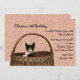 An adorable black and white kitten rests one paw at the edge of the basket she's peaking from. A sweet design for children's birthdays or cat lovers of all ages. The card is easy to customise with your wording, font, font colour and choice of six paper types.