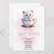 Kitten in Cup Pink Flowers Baby Shower Invitation