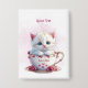 Kitten in Cup Pink Flowers Button