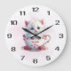Beautiful Kitten in Cup Pink Flowers Wall Clock