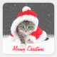 Kitten In Santa Hat and Snowflakes Square Sticker