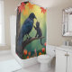 Bird Kitten and Raven Crows, Raven perched in a oak tree greeting a small cat bathroom shower curtain. Colourful bathroom home decor. Fantasy Colourful Background design of Garden Birds theme that you can change styles to match your bath decor. Magical garden trees, birds and small grey kitten friends. The early bird gets the kitty. Pretty Oak Tree Leaves and Garden Flowers. Bird fantasy springtime bathroom shower curtain. Bird image is sizeable too. Perfect beautiful wild birds of a feather lovers gift idea. The smartest birds in the world are Crows and Ravens. And kittens are always cute.