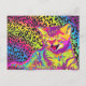 Kitten on rainbow leopard print background design by Liz Harnden.