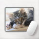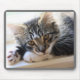 This kitten mouse pad features our adorable grey striped Siberian kitten, Zorro, with his sweet little white paws and fluffy ears as he takes a cat nap on the windowsill. Zorro started his little life out as a feral kitten who was abandoned by his mother in our backyard. He quickly became a treasured member of our family. This mouse pad is perfect for cat lovers.