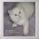 Beautiful Siberian Kitten, white-golden with light blue eyes on lavender carpet; photo by Nikki Wharton-Eby, with poetic caption by Nikki. Would be lovely in any room, especially a child's playroom or bedroom.