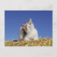 Kitten sitting on straw, scratching, close-up postcard