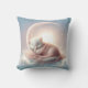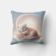 A fluffy white kitten sleeps peacefully cradled by the crescent moon, wrapped in a soft pink blanket