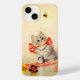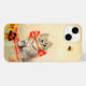 iPhone Case featuring Meta Plückebaum’s artwork Kitten with a Red Ribbon (b. 1876). A grey kitten with dark stripes is beautifully adorned with a red ribbon. The kitten plays with a bee. Yellow flowers decorate the foreground. A wonderful gift for cat lovers and German art enthusiasts!