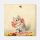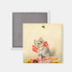 Magnet featuring Meta Plückebaum’s artwork Kitten with a Red Ribbon (b. 1876). A grey kitten with dark stripes is beautifully adorned with a red ribbon. The kitten plays with a bee. Yellow flowers decorate the foreground. A wonderful gift for cat lovers and German art enthusiasts!