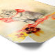 Photo Print featuring Meta Plückebaum’s artwork Kitten with a Red Ribbon (b. 1876). A grey kitten with dark stripes is beautifully adorned with a red ribbon. The kitten plays with a bee. Yellow flowers decorate the foreground. A wonderful gift for cat lovers and German art enthusiasts!