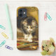 iPhone Case featuring Henriëtte Ronner-Knip’s oil painting The Young Artist (1821-1909). A black and white kitten plays with a paint set and two brushes. An adorable gift for cat lovers and Romanticism enthusiasts.