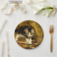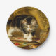 Paper Plates featuring Henriëtte Ronner-Knip’s oil painting The Young Artist (1821-1909). A black and white kitten plays with a paint set and two brushes. An adorable gift for cat lovers and Romanticism enthusiasts.