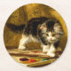 Paper Coasters featuring Henriëtte Ronner-Knip’s oil painting The Young Artist (1821-1909). A black and white kitten plays with a paint set and two brushes. An adorable gift for cat lovers and Romanticism enthusiasts.