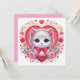 Kitten with Red Bow with Romantic Floral Hearts Invitation