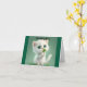 Sweet kitten holding a shamrock, is featured on this greeting card for St. Patrick's Day. Front of card reads, "Sending You" and inside of the card reads, "Irish Kisses and Shamrock Wishes! Happy St. Patrick's Day". A wonderful card to send to family and friends for the Irish holiday!