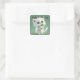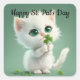 Adorable picture of a white kitten holding a shamrock, is featured on this square sticker for St. Patrick's Day. With message, "Happy St. Pat's Day", use this sticker for those special mailings, decorating, scrapbooking and more for the Irish holiday!