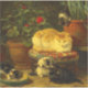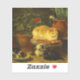Sticker featuring Henriëtte Ronner-Knip’s oil painting Kittens at Play (1821-1909). A mother cat looks on as her four kittens are playing on a chair, plant, and food bowl. A perfect gift for cat lovers and Romanticism enthusiasts.