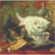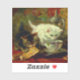 Sticker featuring Henriëtte Ronner-Knip’s oil painting High Tea (1821-1909). A fluffy white kitten drinks from a teacup and a tabby nibbles a pastry on a tea tray. A perfect gift for cat lovers and Romanticism enthusiasts.