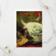 Card featuring Henriëtte Ronner-Knip’s oil painting High Tea (1821-1909). A fluffy white kitten drinks from a teacup and a tabby nibbles a pastry on a tea tray. A perfect gift for cat lovers and Romanticism enthusiasts.