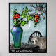 Both intriguing and stunning, this original digital painting by Leslie Sigal Javorek, focuses on the artfully arranged poppies in an iridescent Tiffany "Favrille Glass" vase, guarded by a wide-eyed kitten as a Nelson-type clock silently ticks in the background. Inspired by the post-impressionism still-life's painted by Matisse. Printed on heavy-weight post paper with a semi-gloss finish, it fits an 18"x24" picture frame (or hang on your wall as is!)