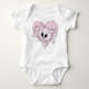 Cute pink kitty skull and crossbones is set upon a pink patterned heart. This is a cute and girly skull for the ladies.