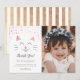 Cute thank you card for your child's kitty cat theme birthday party. Illustration of a cat with a big smile on her face with pink and gold glitter. The message in the template thanks the guests for coming and for the gifts. It says "thank you for coming to my purr-fect party." Customise this product by adding your child's name and photo. Trendy and girly design for a girl's birthday party.