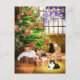 Multiple cats gather around the Christmas tree and wait for gift opening time