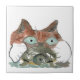 Kitty Cat Clutches his Turtle Pal Ceramic Tile