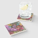 The coasters are gorgeous, a quality feel and heavy weight. They look like a precious archeological find. A rustic stone juxtaposed with a modern floral black and white print. I like the way the print goes slightly imperfect on the cut stone edges giving them a kind-of natural beauty.