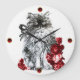 KITTY CAT,KITTEN WITH RED ROSES,Black White Large Clock