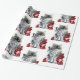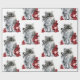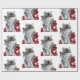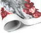 KITTY CAT /KITTEN WITH RED ROSES Black White Wrapping Paper