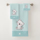 Cute kitty cat and monogram on light blue Bath Towel Set.