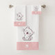 Cute kitty cat and monogram on pink and white Bath Towel Set.