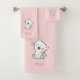 Cute kitty cat and name text on light pink Bath Towel Set.
