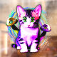 Cute Kitty Cat Digital Painting, with disturbing glitch eyes, trippy mushrooms, surreal Psychic Psychedelic Surreal Art Copyright BluedarkArt TheChameleonArt.