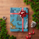 Kitty Corner Cat Pattern Teal Wrapping Paper