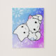Cartoon kittens cuddling. Cute white kittens cuddling with a blue pink background.